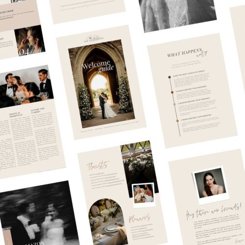 These are the exact guides I send to my couples, including copy! You won’t find any ‘Lorem ipsum’ in these templates 😉 You’re more than welcome to keep the copy as is, although I would very much recommend tweaking it to match your brand & voice and/or deleting anything that you feel isn’t relevant to your business.